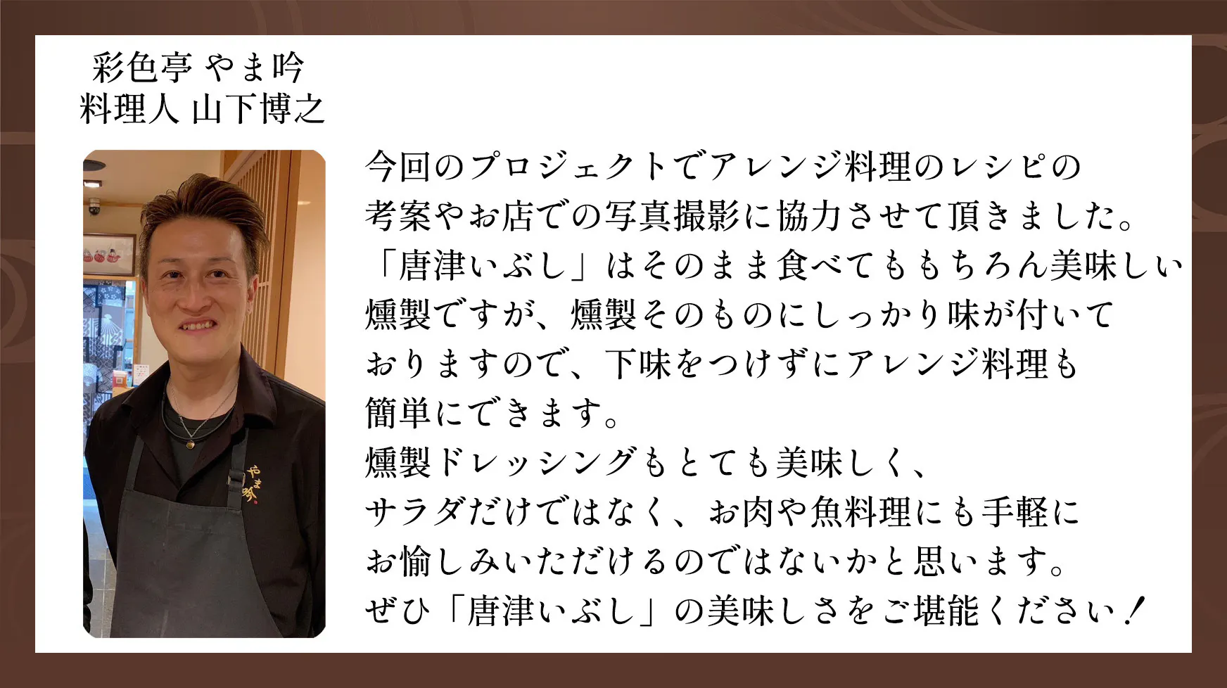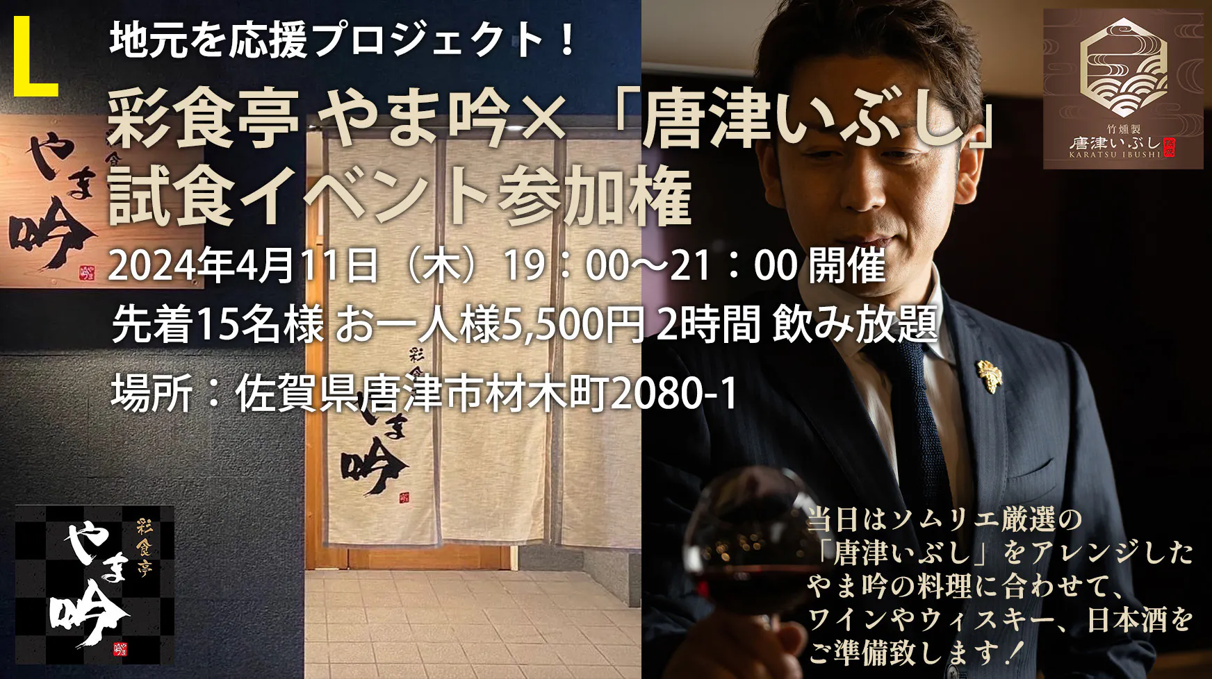 2024年4月11日(木)地元を応援プロジェクト!「唐津いぶし」×彩色亭 やま吟 試食会イベント