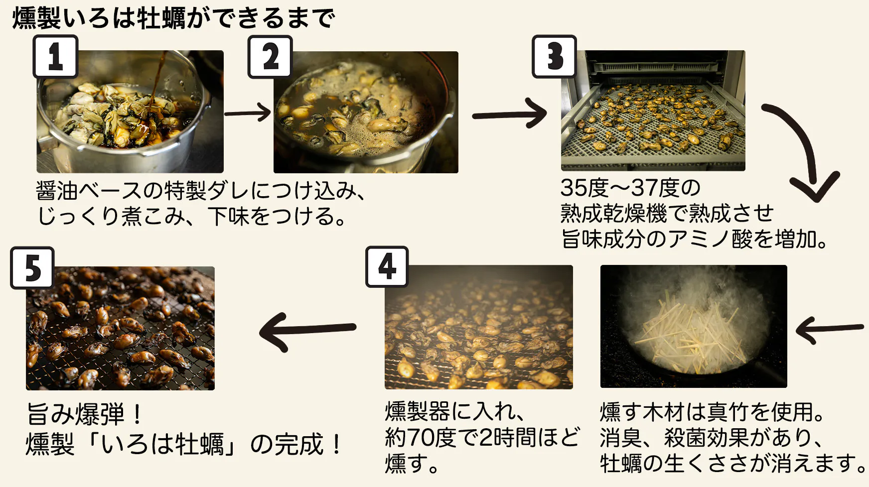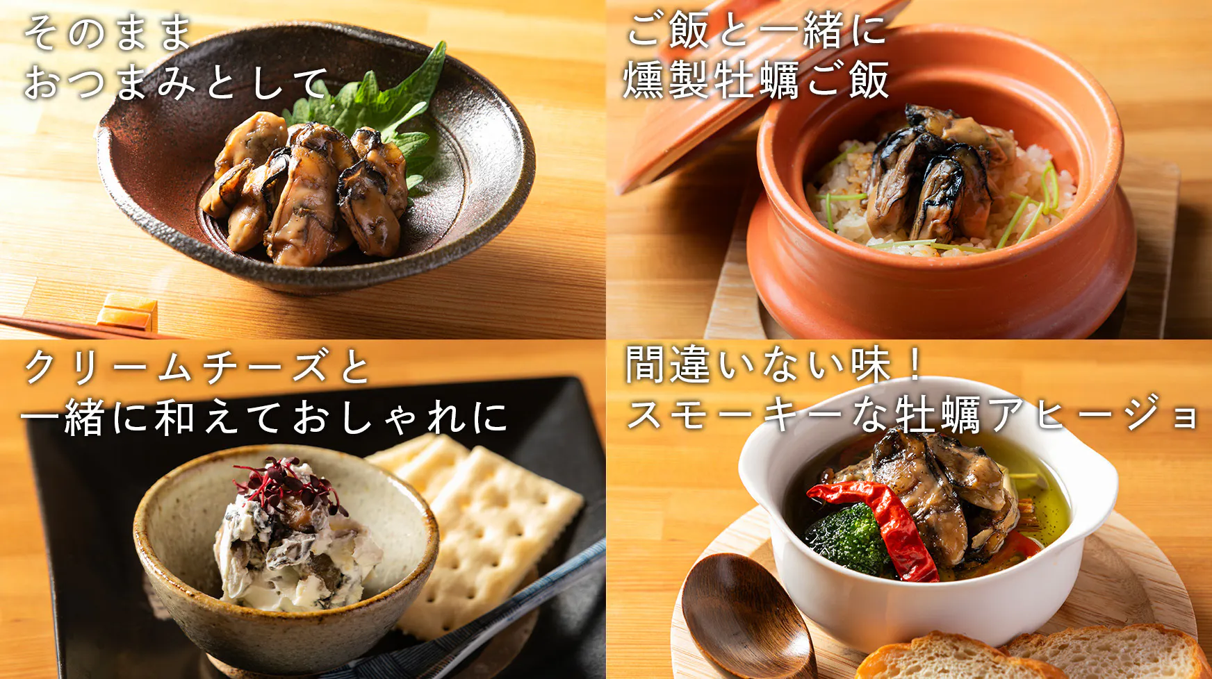 燻製のオリーブオイル漬けの商品やいぶし牡蠣キムチも