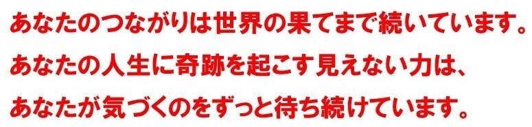 ひとりひとりの愛や力は小さくても、たくさんの人が同じ意識で集まる時、想像を超えた現実が動き出します。みんなでその先にある、見たこともないミラクルを見てみたい、今はその気持ちでいっぱいです。