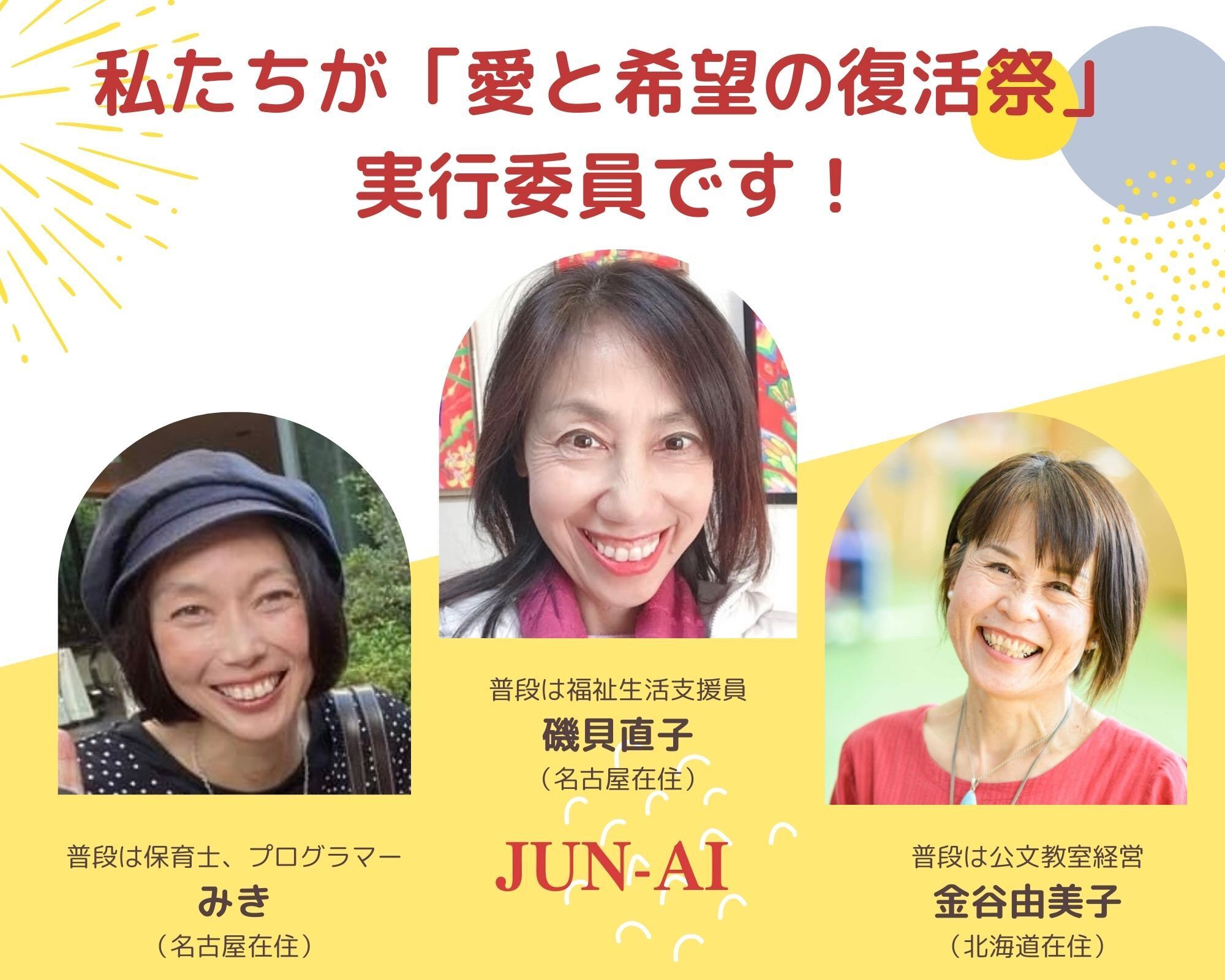 主催 愛と希望の復活祭JUN-AI 実行委員(磯貝直子 みき 金谷由美子)