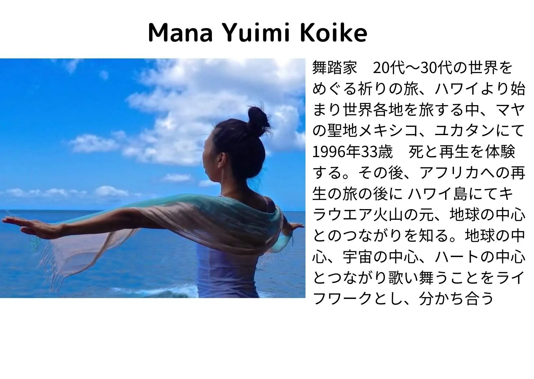 幸いなことに同じ思いで共感してくれる仲間はすぐに見つかりました。ゲストでも出演してくれるハワイ島在住のManaさんでです。Manaさんは一昨年名古屋で開催した「111純愛x熱田の集い」にも出演してくれた古からの友人、魂の仲間です。