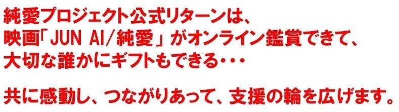 また、「純愛史上はじめてのクラウドファンディング」である本支援プロジェクトを公認し、純愛プロジェクトからの公式リターンとして「純愛オンライン鑑賞プログラム」ほかを提供いたします。