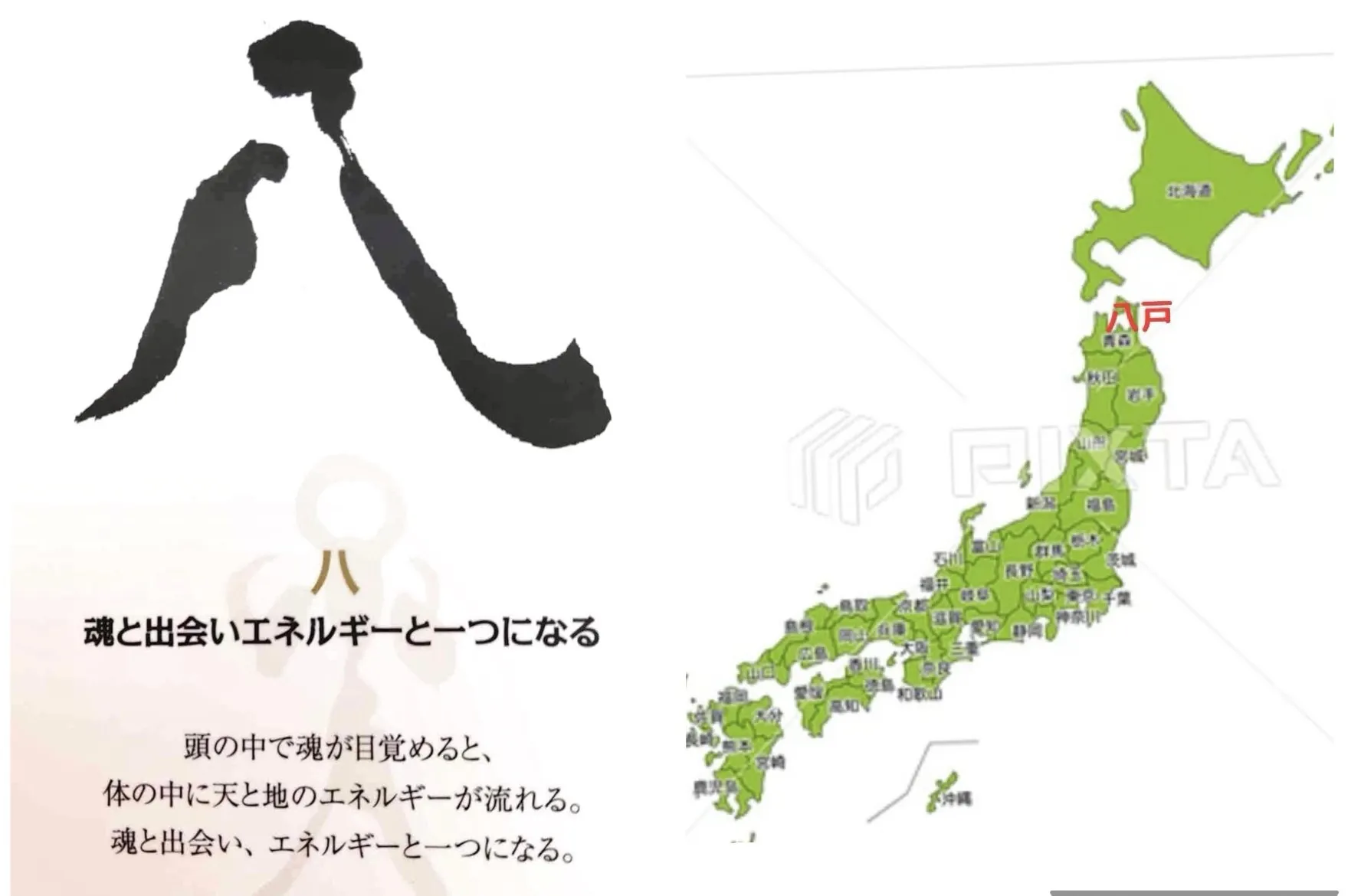 「八」とは魂の思いに目覚め天と地をつなぐ本来の自分になること。そして、日本列島を龍の形にみたてると、青森八戸はちょうど喉の位置でした。喉は第5チャクラ、創造性の源。頭と体がつながる交差点です。喉が塞がれれば体全体が滞るとても重要な場所でした。「八戸」が開くとは、喉を塞いで生きてきた私たち人類が、いよいよその喉を開き本来の自分として戸(扉)を開き大空へ飛び立つ、その時が来たことを意味しているのだと思われます。