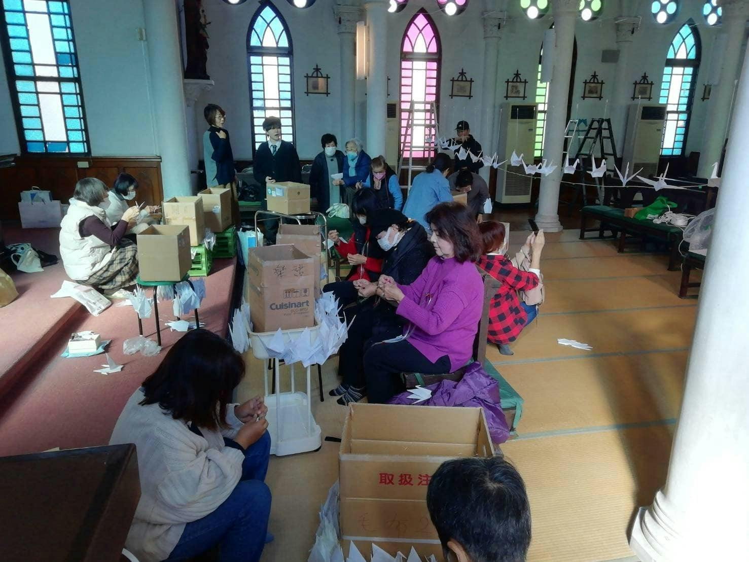 また、白い折り鶴の空間アート「プロジェクト白い鳥」では、ボランティアでご来場くださったみなさんの手によって折られた鶴を聖堂に展示するというイベントも行いました。