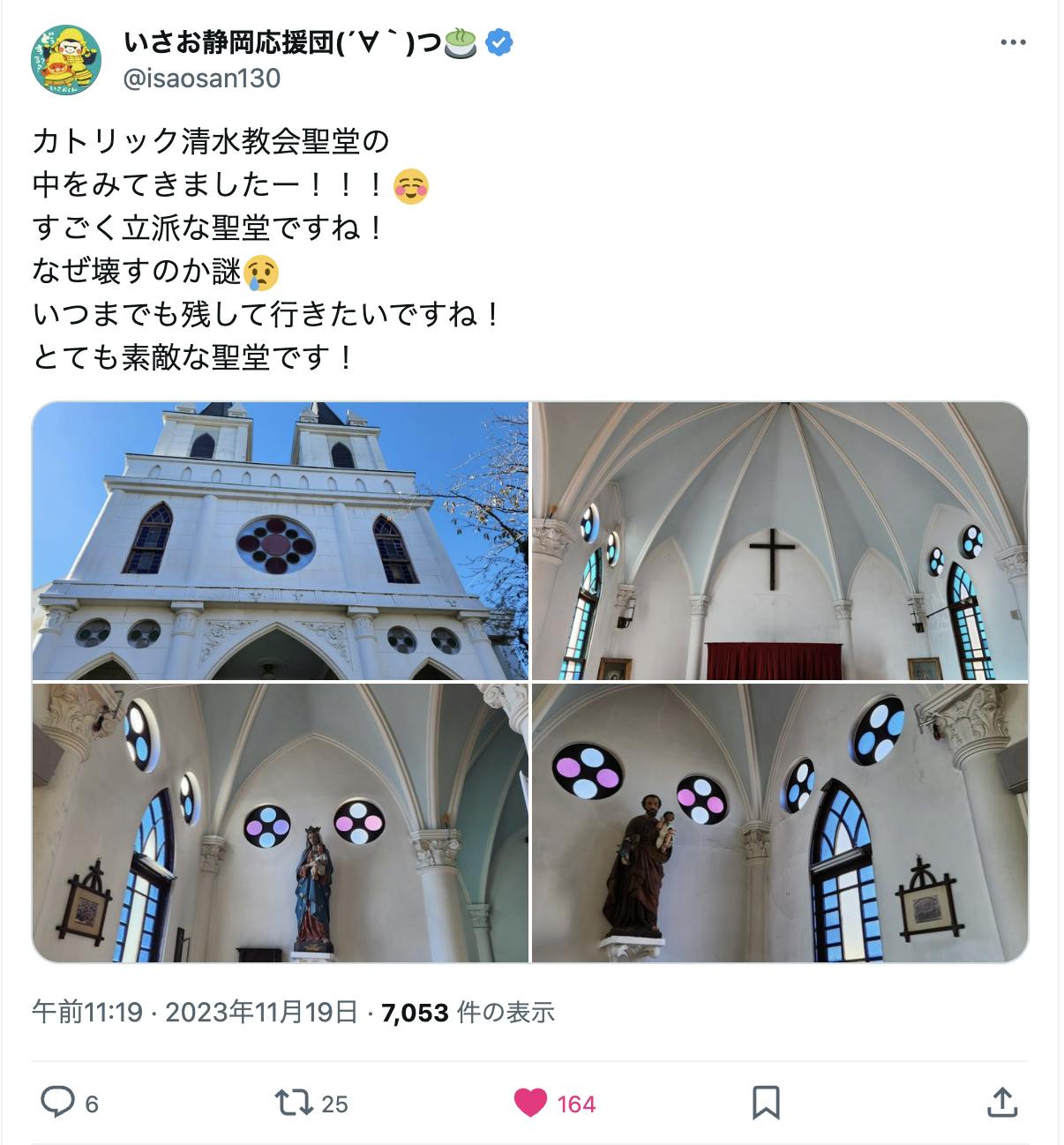 またSNS等では、旧カトリック清水教会の建物取り壊しを惜しむ声もたくさんいただきました。(一部抜粋)