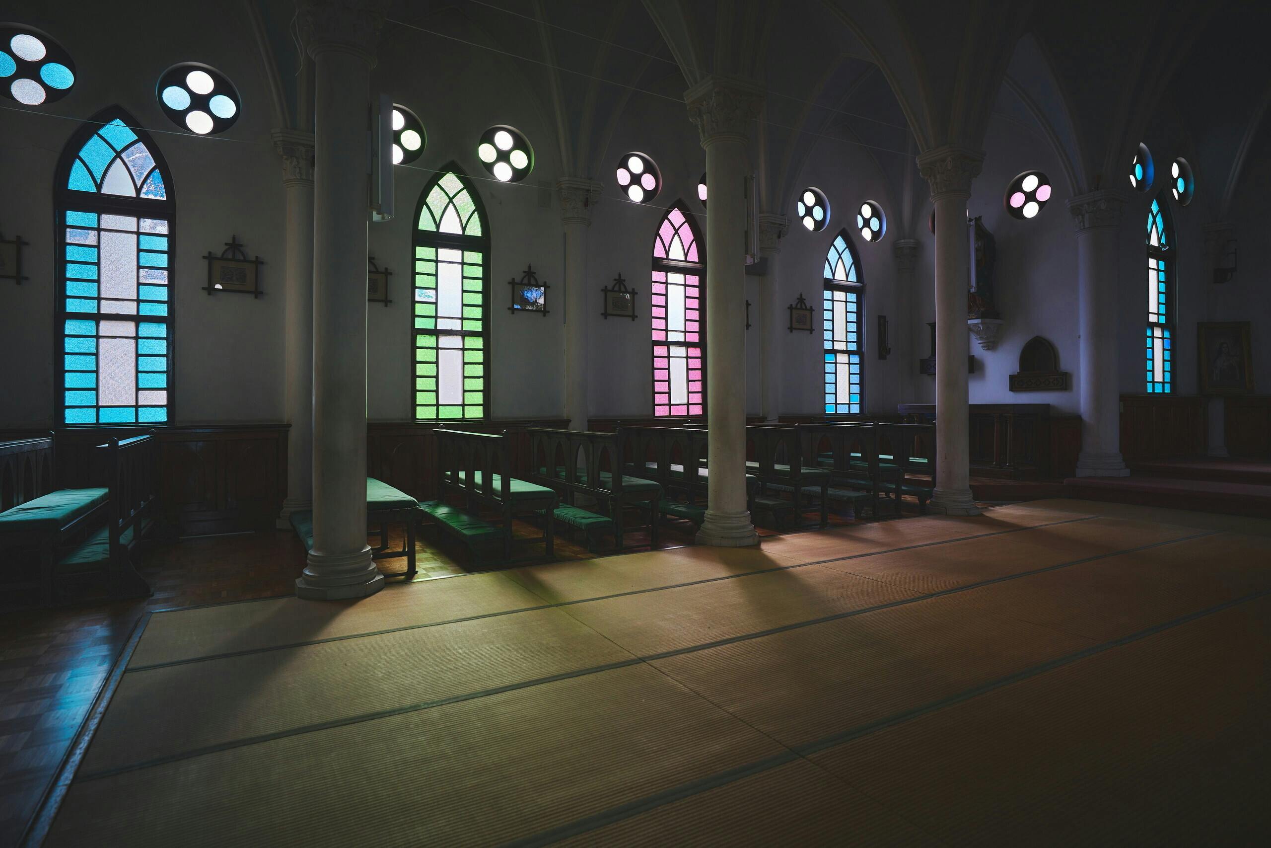 また、聖堂内の床には畳が敷かれていたり、ステンドグラスは障子を思わせるデザインであったりすることから、「日本人にとって親しみやすいカトリック教会」を意識して造られたこともうかがえます。