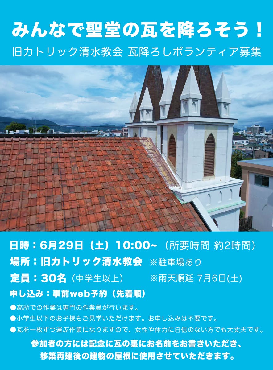 そしてこの度、活かす会の活動の一環として、旧カトリック清水教会という重要建築物の魅力や歴史を後世に伝えること、そして活動費用の一部をまかなうことを目的とし、クラウドファンディングを行うことにいたしました。