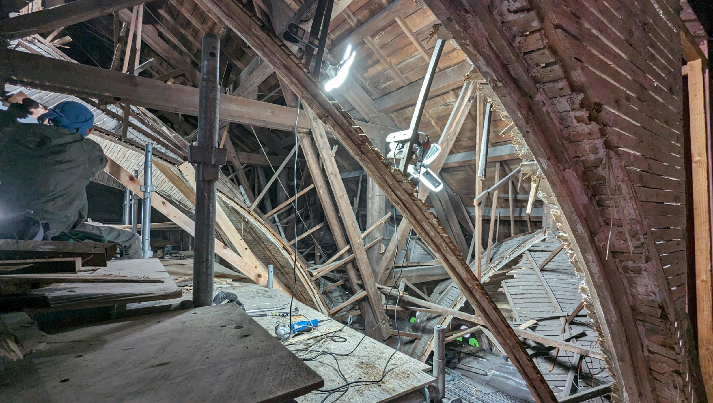 屋根裏の中には、大工たちのひたすらな執念をすら感じるほどの無数の木が複雑に入り組んでいました。