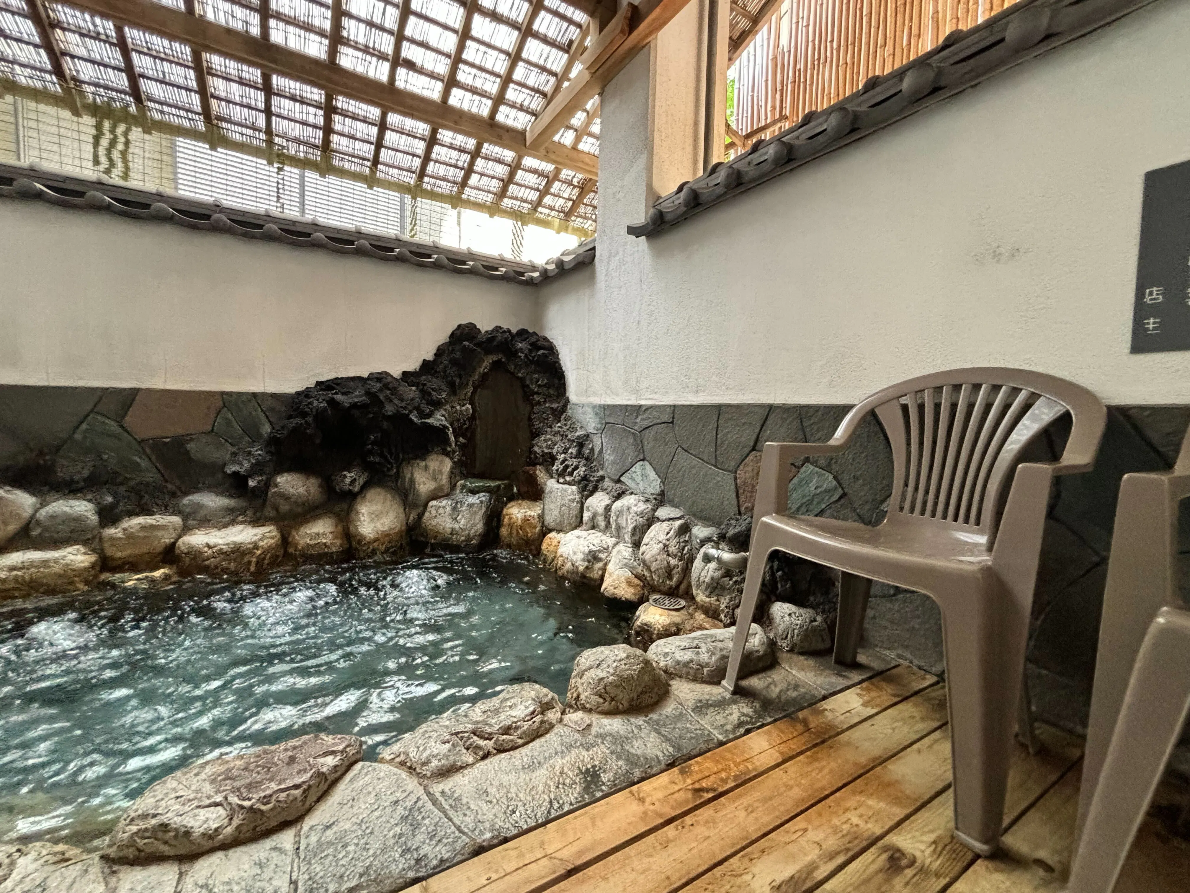 ④外に足を運ぶと、露天風呂が。季節によって水温を調整しております。