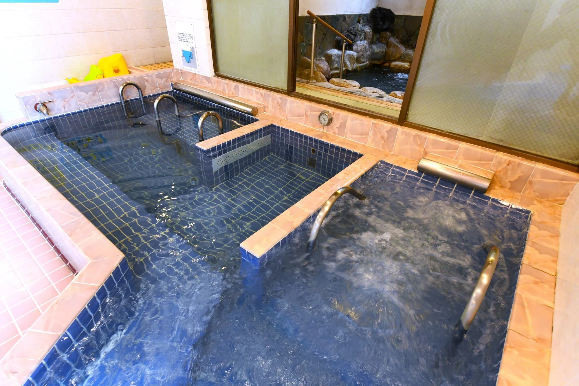 ②その他に寝湯、電気風呂、ジェットバスが並びでございます。体調や気分で使い分けしてください。