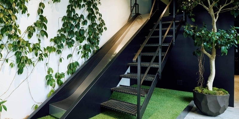 子供同伴出勤を可能とし、子供の面倒を見ないといけない時に連れて来られるオフィスにしています。キッズスペースには滑り台、卓球台、ダーツなど、子供から大人まで遊べる環境を用意しています。