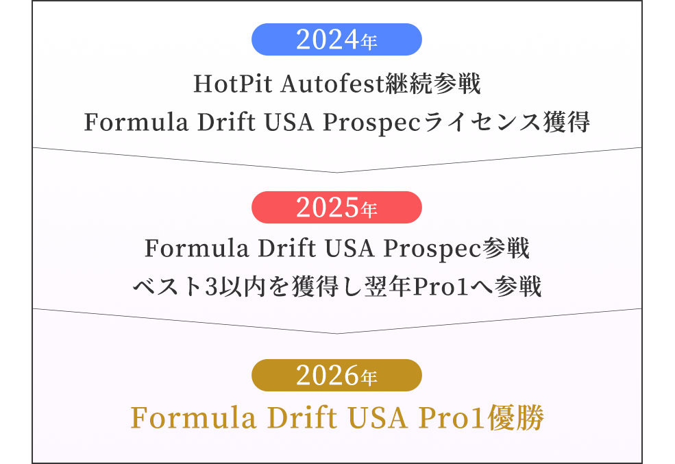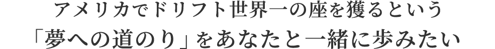 アメリカで目指すドリフト世界一を現実のものとするために、NEXTゴールを設定し、