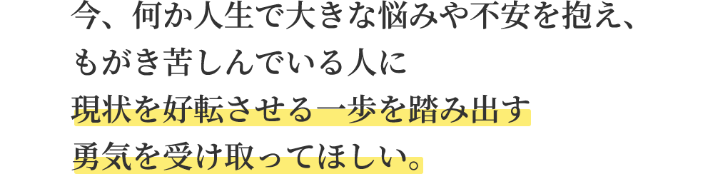 これがProject773の根底にあるメッセージです。このページをご覧のあなたも、今、何かに挑戦していたり、毎日を必死に生きていると思います。