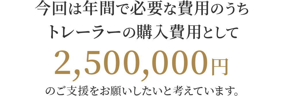 トレーラーに掲載するお名前のサイズは横500mmを予定しております。支援者様の総数で変更になる場合がありますので予めご了承ください。(掲載期間はどのコースも2024年シーズン〜2026年シーズンの3年間を予定しております)