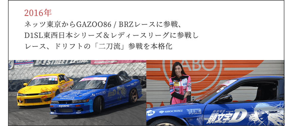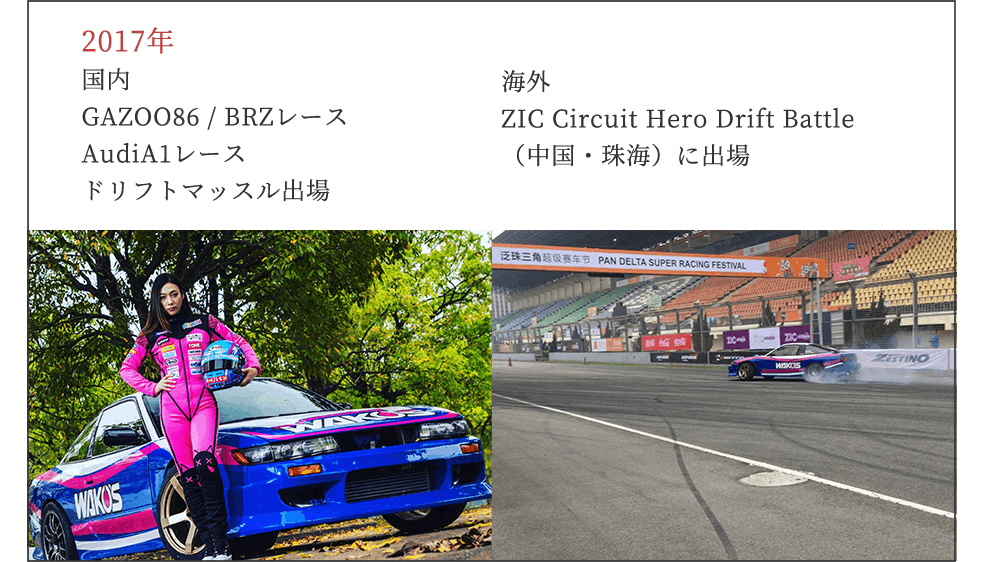 飽き性な私が生涯を通して熱中できるもの。それがレースの世界でした。寝ても覚めても、考えることはコンマ1秒でも速く走ることだけ。そんな毎日をかれこれ12年過ごし、今、私の心を熱くしてくれるのがドリフトという競技です。