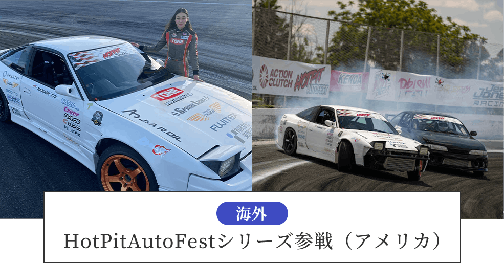 プロデビューから12年のキャリアを積み、国内レース活動だけではなく、Formula Drift USAというアメリカの夢舞台で“世界No.1”の座を勝ち取りにいきます。