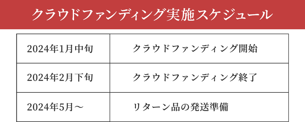 本プロジェクトはAll-or-Nothing方式で実施します。目標金額に満たない場合、計画の実行及びリターンのお届けはございません。