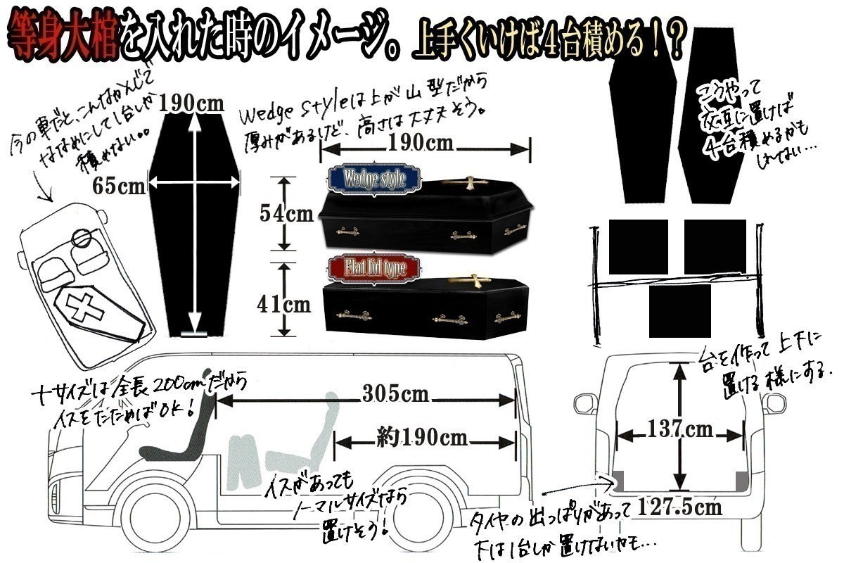 本当は霊柩車で伺うくらいの演出でお届けしたいのですが、霊柩車も1台しか棺入らないので、これは棺工務店としてめちゃくちゃフル活動して、もう一台車が買えるようになってから叶えたい夢です。。
