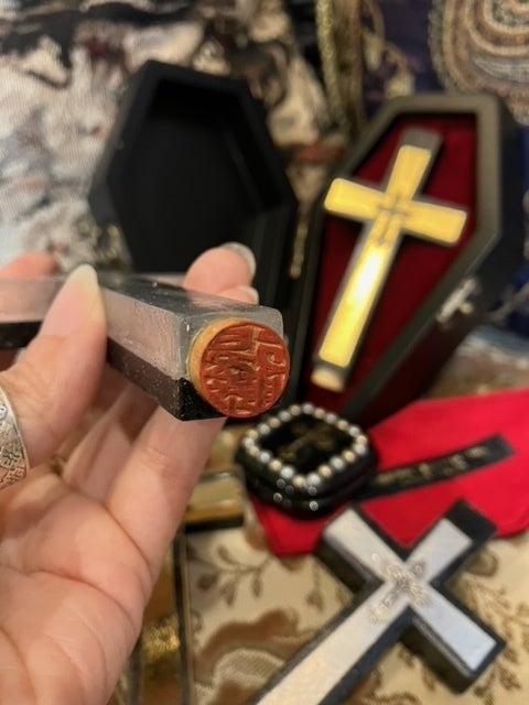 この写真は私の苗字『後藤』はんこですが、皆様のご希望のお名前を一つずつはんこ彫epokhe.さんが彫って下さり、世界に一つだけの十字架印鑑が仕上がりました~!