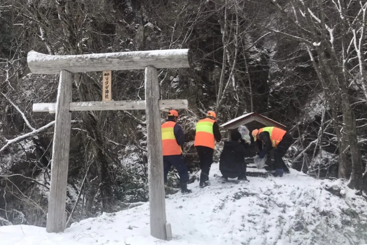 また隣町にある、文化や自然と触れ合うためのゲストハウス「ORIYAMAKE」さんまで、昔の山道を使って行く連泊コラボ「(新米)マタギと冒険コース」を開拓中です。ORIYAMAKEのご主人(織山さん)もマタギとして活動しており、学生時代からお世話になっています。