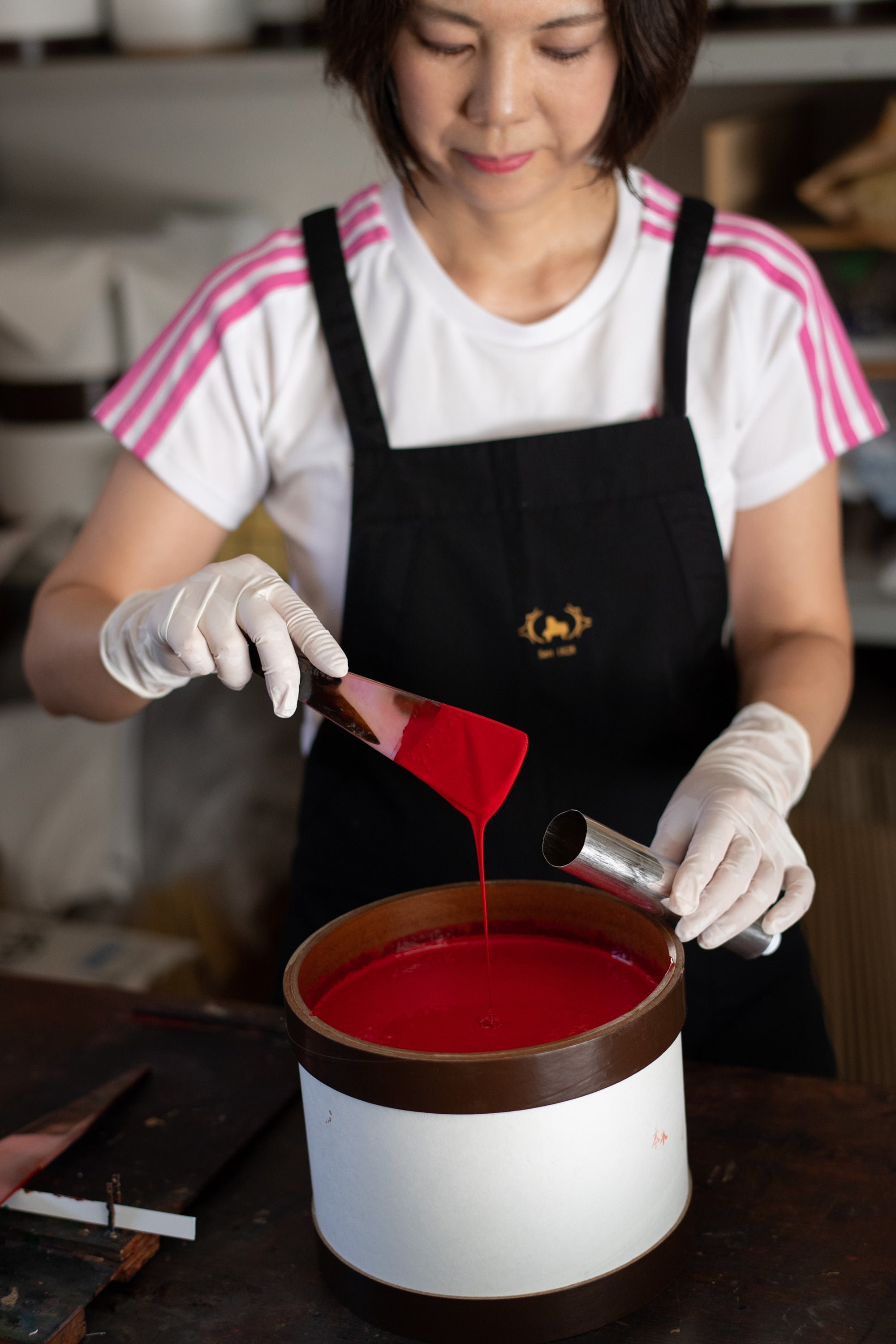 賀名生漆工芸代表の加藤朋子です。兵庫県尼崎市で漆の卸売りをしています。