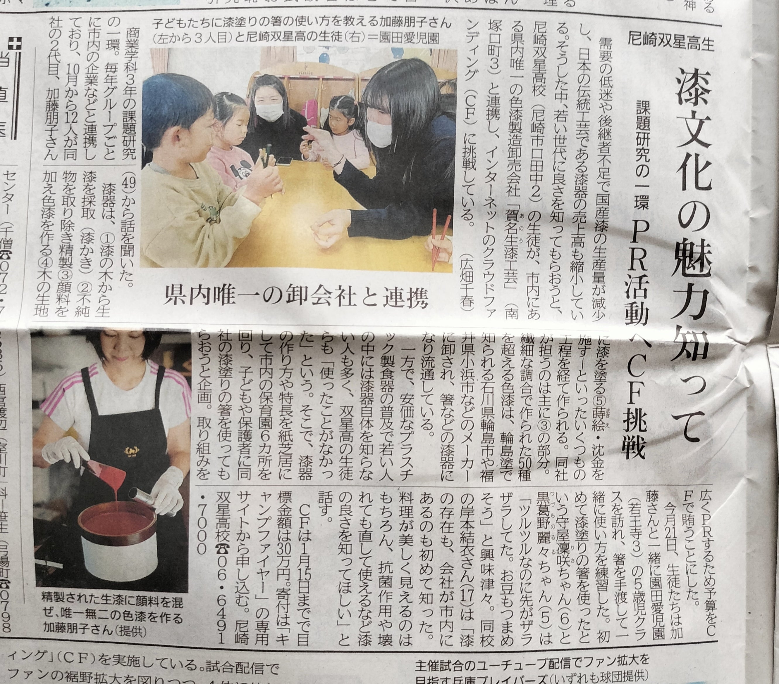 このプロジェクトは賀名生(あのう)漆工芸と尼崎市立双星高校商業学科3年生のコラボで実施しています。