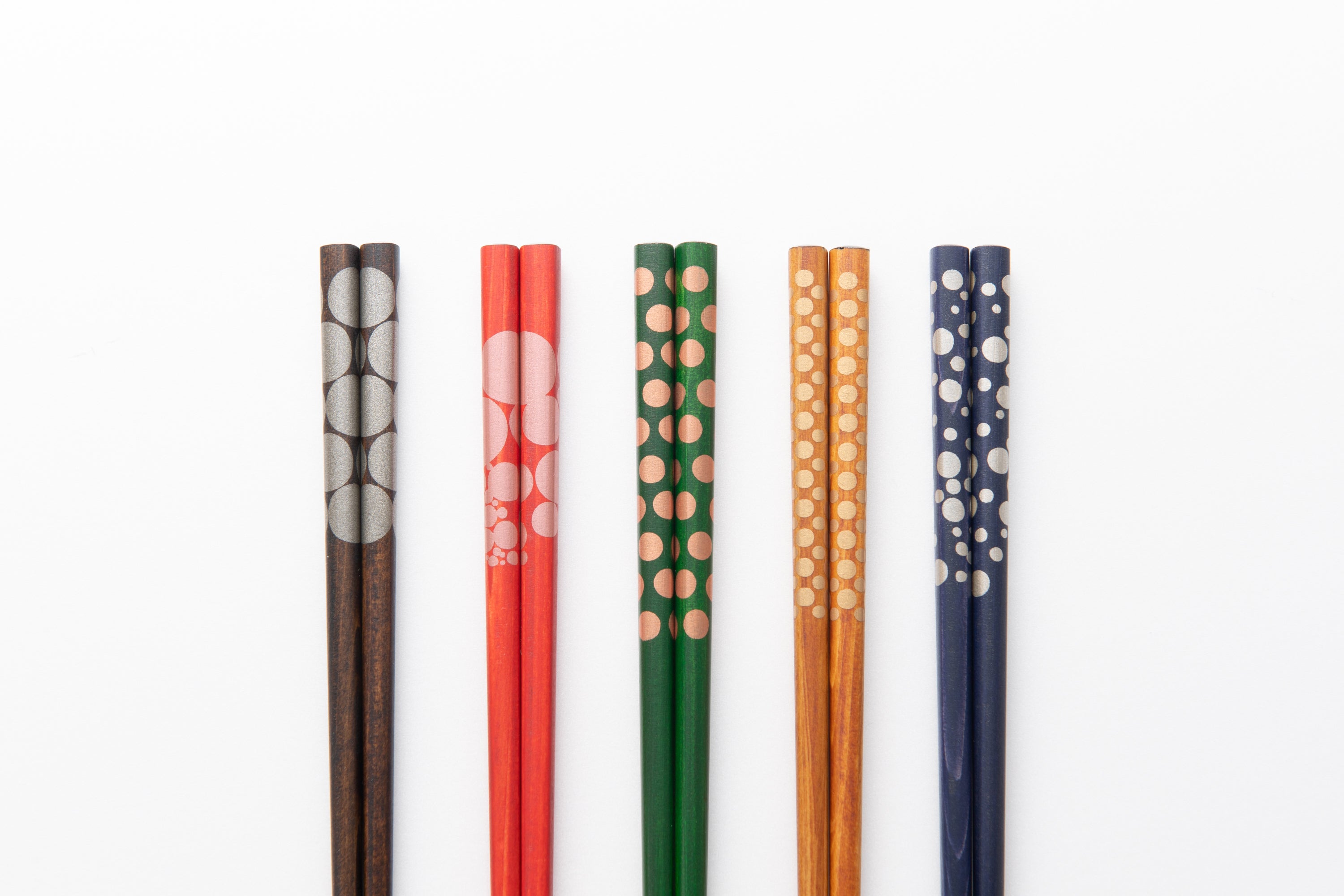 こちらのかわいらしい水玉のお箸は、輪島市の橋本幸作漆器店の十八膳シリーズのひとつです。