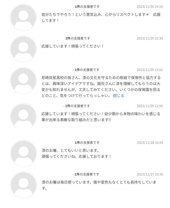 皆様、当プロジェクトにご支援いただきありがとうございます。