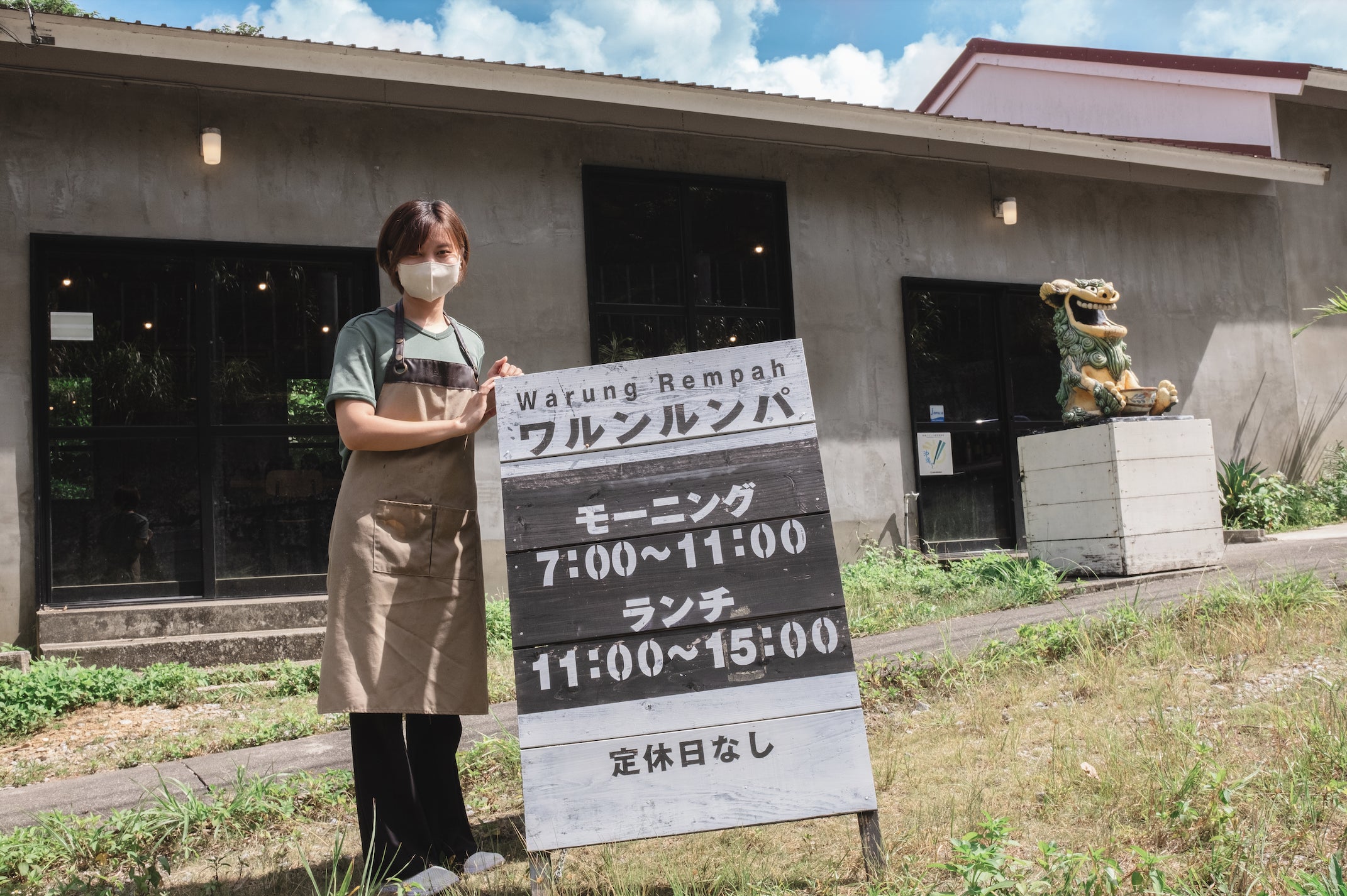 大学を卒業後はインドネシアジャカルタにて日系企業の日本人社長秘書として働き、その後2021年11月に沖縄県に移住をし2022年7月にワルンルンパをオープンしました。