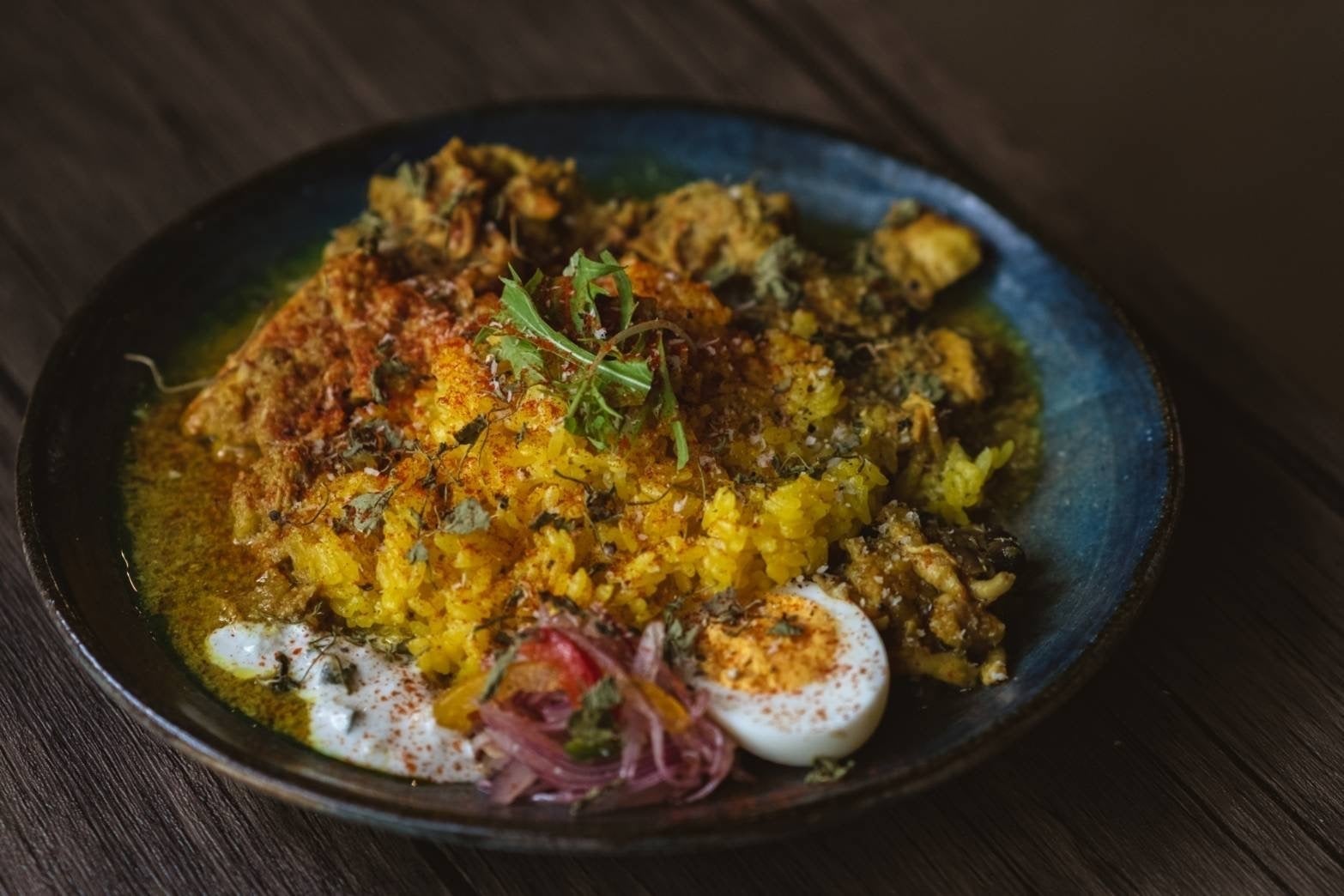ご飯はバリ島のターメリックライスのレシピで作っており、少し塩味を加えることでカレーの塩分とバランスの取れた味になるようにしております。