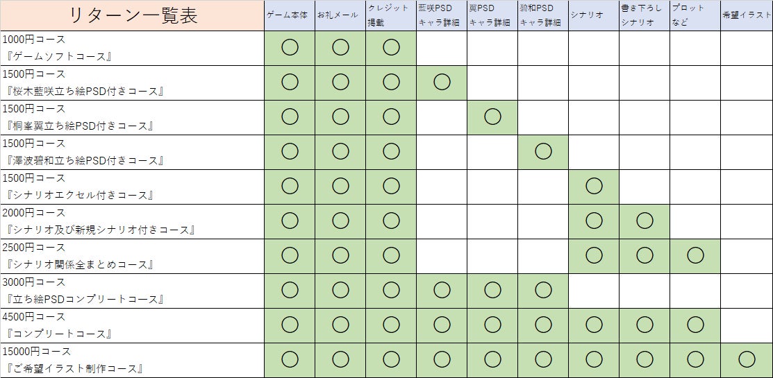 その他に関しましては、リターン内容のところに書いておりますので、お読みいただけますと幸いです。
