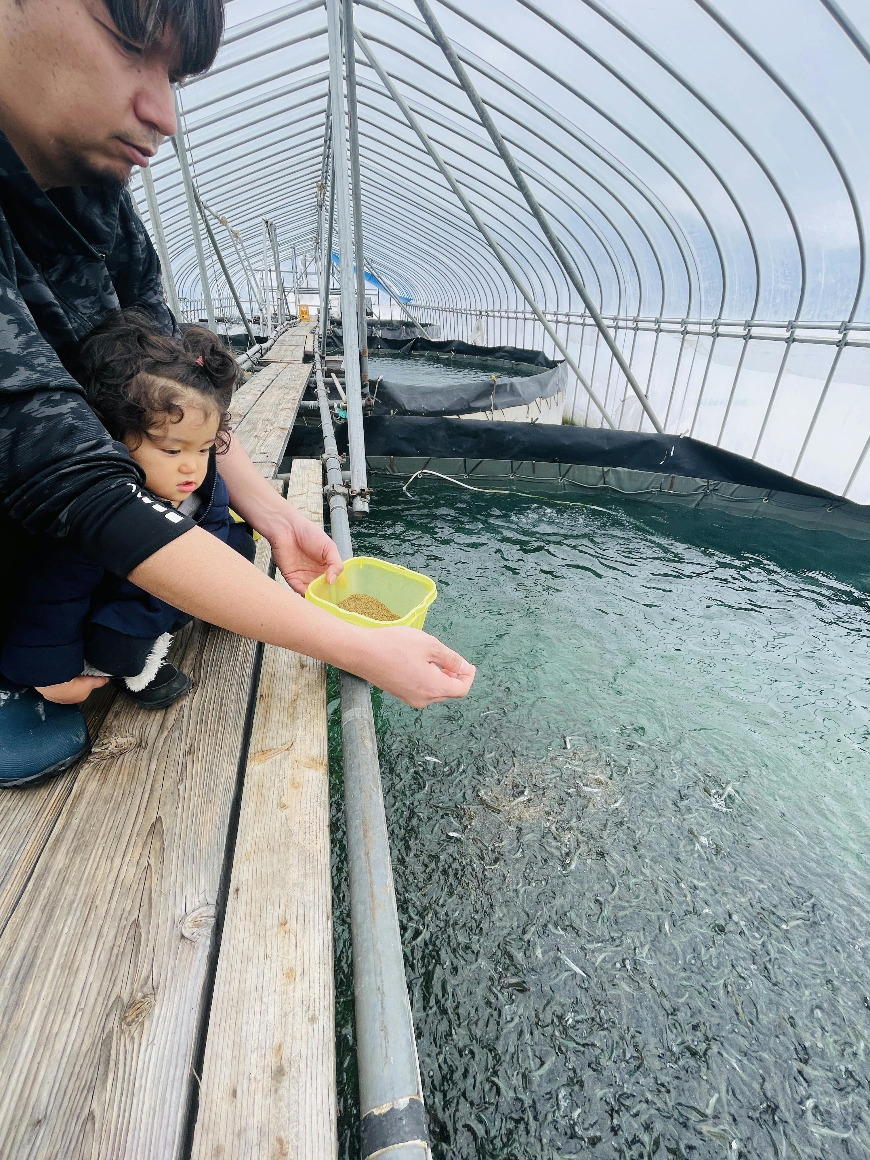 無事に入荷した後も、少しの変化でも死んでしまう繊細な鮎なので気を抜けません。小鮎の時期はしっかり食べられているか、運動は足りているか確認しながら毎日3回手作業で餌を食べさせます。30万匹に及ぶ鮎に全て餌をあげるのに毎回1時間ほどかけて全ての鮎に目が行き届くようにしています。雪深い秋田、雪解けまではハウスの中で、水温水量ともに鮎にとって好条件の恵まれた地下水で育てています。