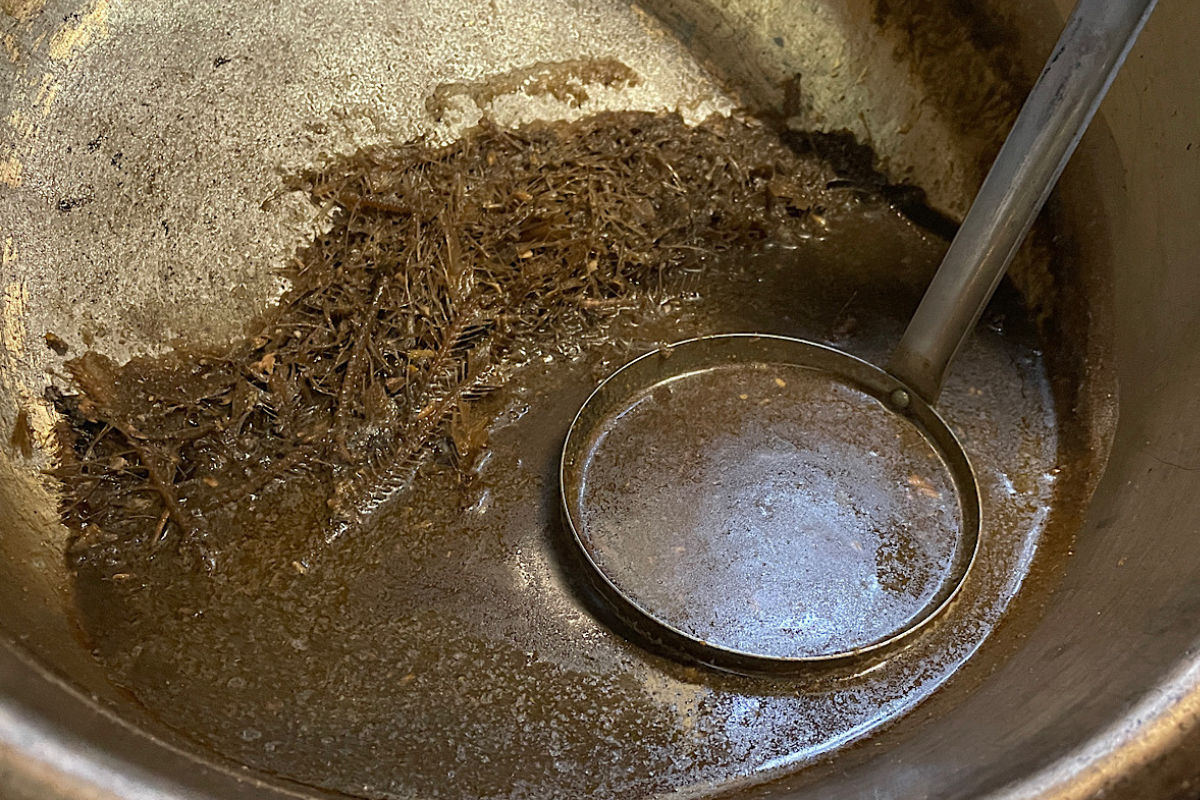 実を言うと昨年から鮎乃家では鮎しょっつる(魚醤)を研究しています。先日仕込んでから一年寝かせた鮎しょっつるを精製しました。改良は必要なものの手応えを感じる味わいだったので、近い将来、鮎しょっつるで味付けした鮎出汁もできるかもしれません。こちらも長い目で楽しみにしていてくださればと思います。