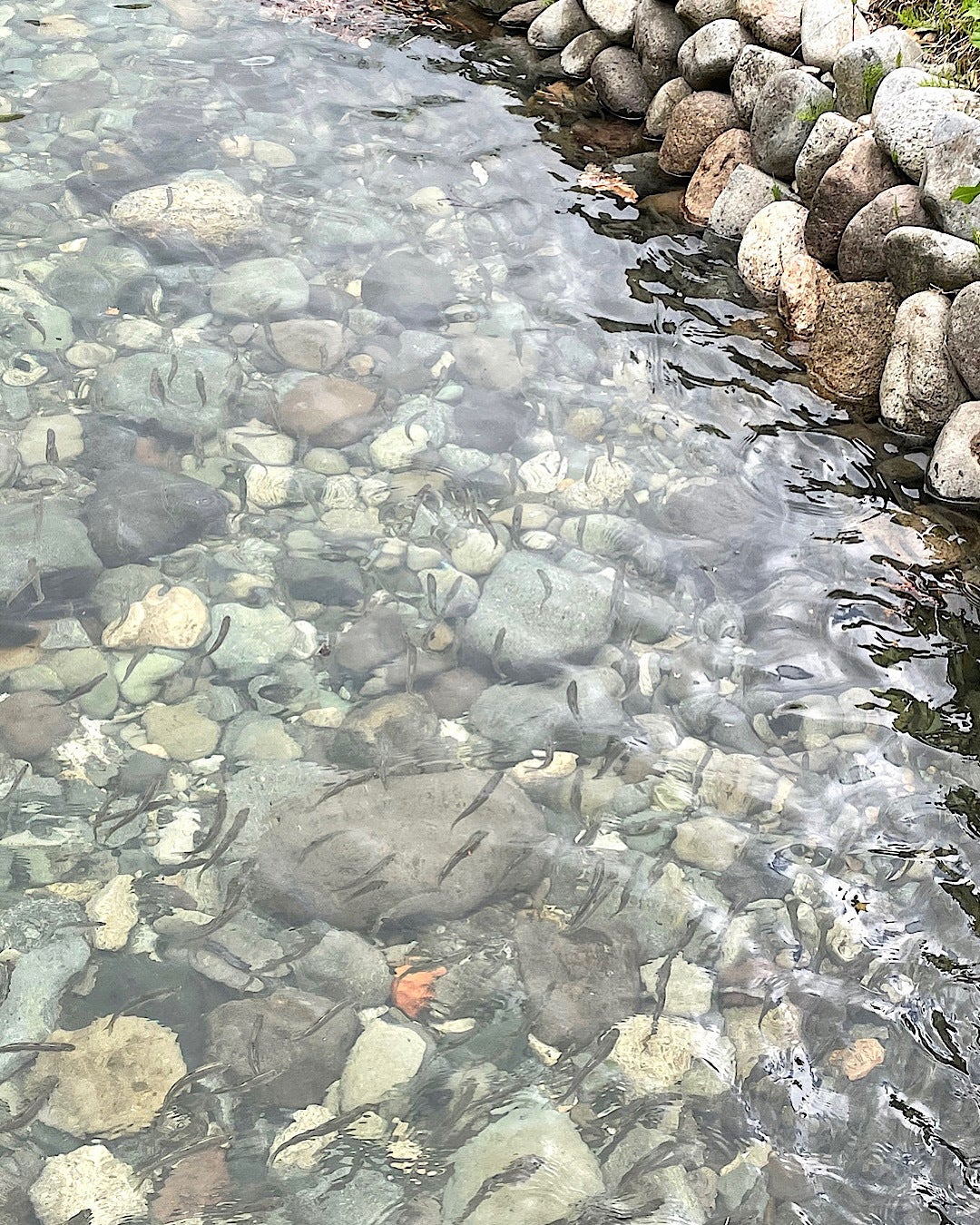 ちなみに池に敷き詰めた玉石は、鮎が苔を食べるときに怪我をしないように、つるつるした材質を選んでいます。