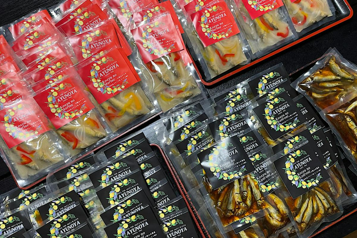 商品はどの大きさの袋に詰めたらいいか、数量をかえて試作をいくつも作りました。パッケージデザインは素人ながら家内が担当しました。鮎を育てるところから、商品をお客様のお手元に届けるまで自分たちで行うことで費用を抑え商品を完成させました。2022年2月ネット販売開始。初めてネットで売れた商品は「小鮎のマリネ」一つでした。