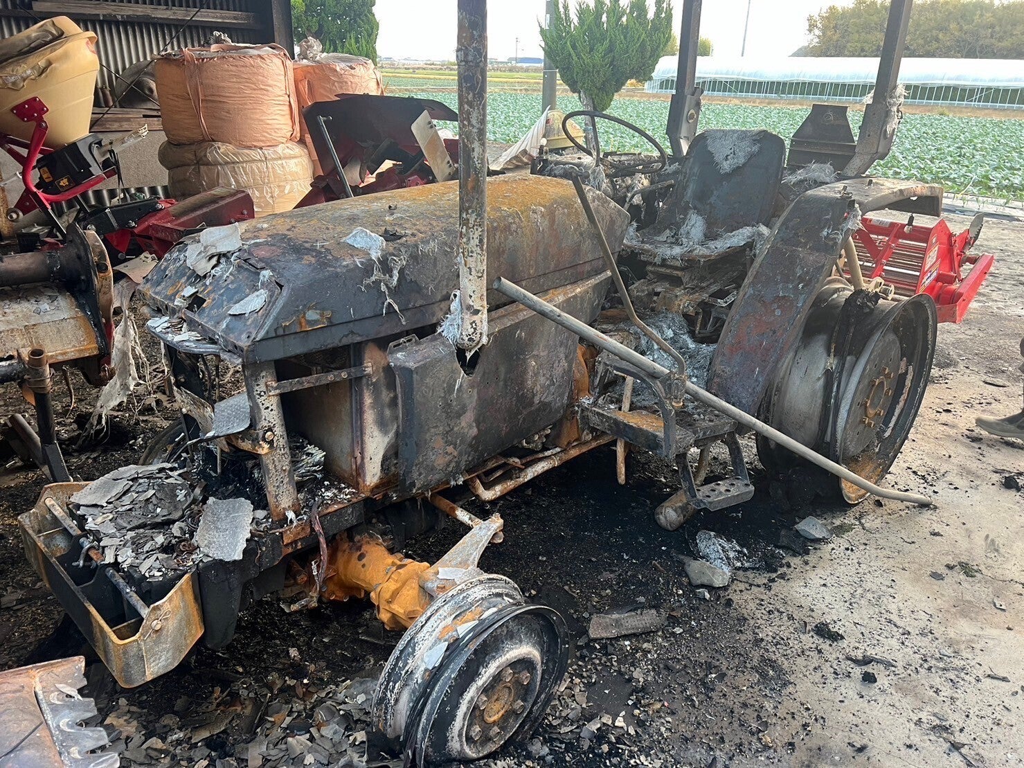 収穫や出荷に必要なトラクターを2台全焼しました。