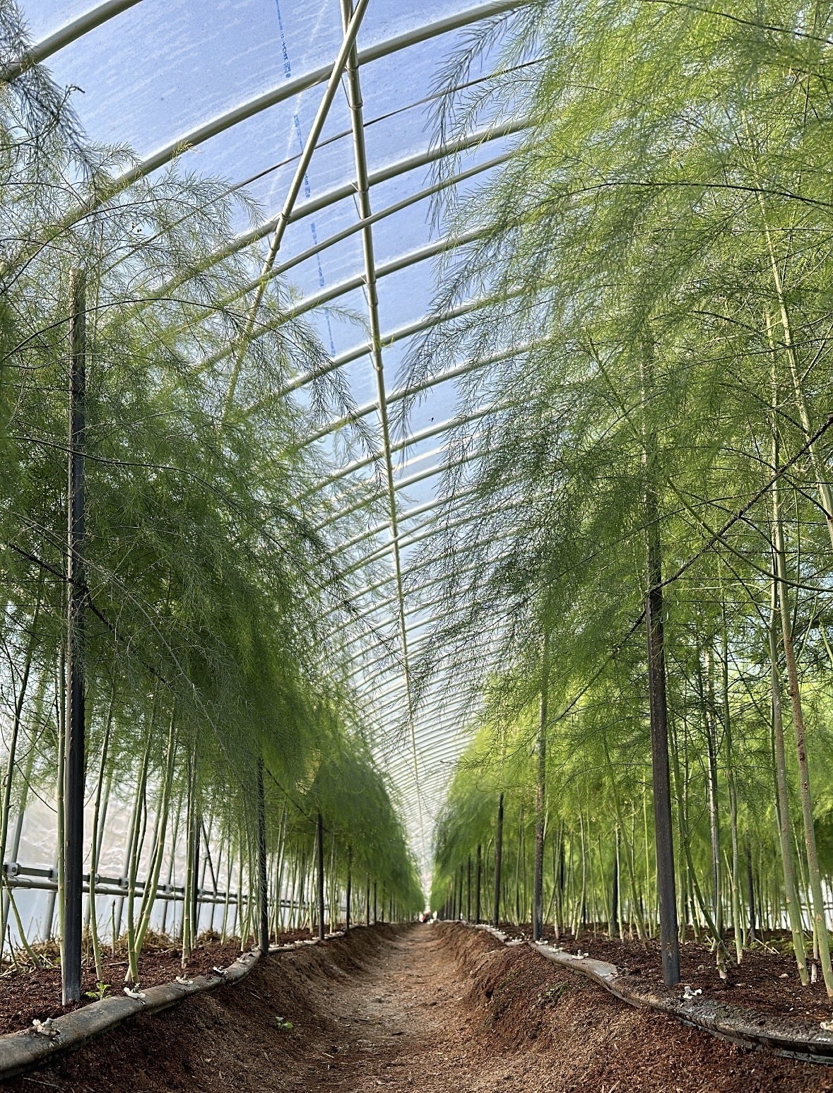 アスパラガスの栽培は現在2年目ですが、自分1人で手作業で建てたハウスで3棟で栽培しています。