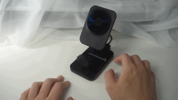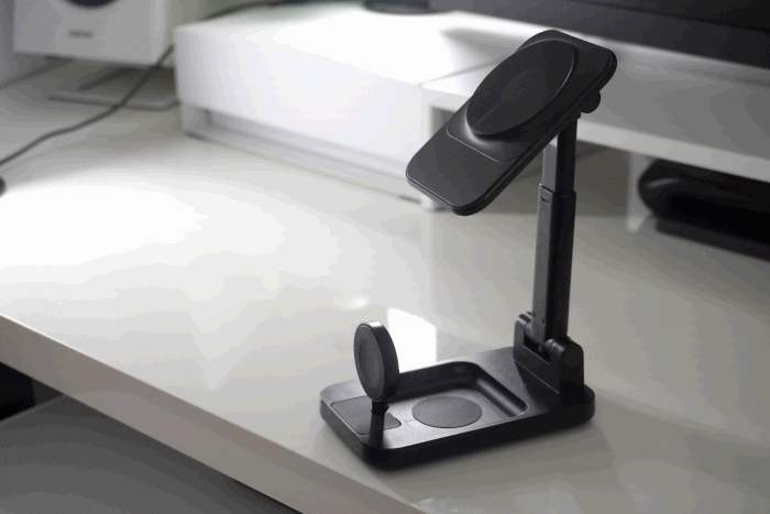 スマートフォンとApple Watch専用ドックはMagsafeに対応しているので充電中もずれたり、落ちないほど磁気ホールド力を持っています。AirPods充電部分はウォッチの後ろ側に位置させることでよりコンパクトなサイズになりました。
