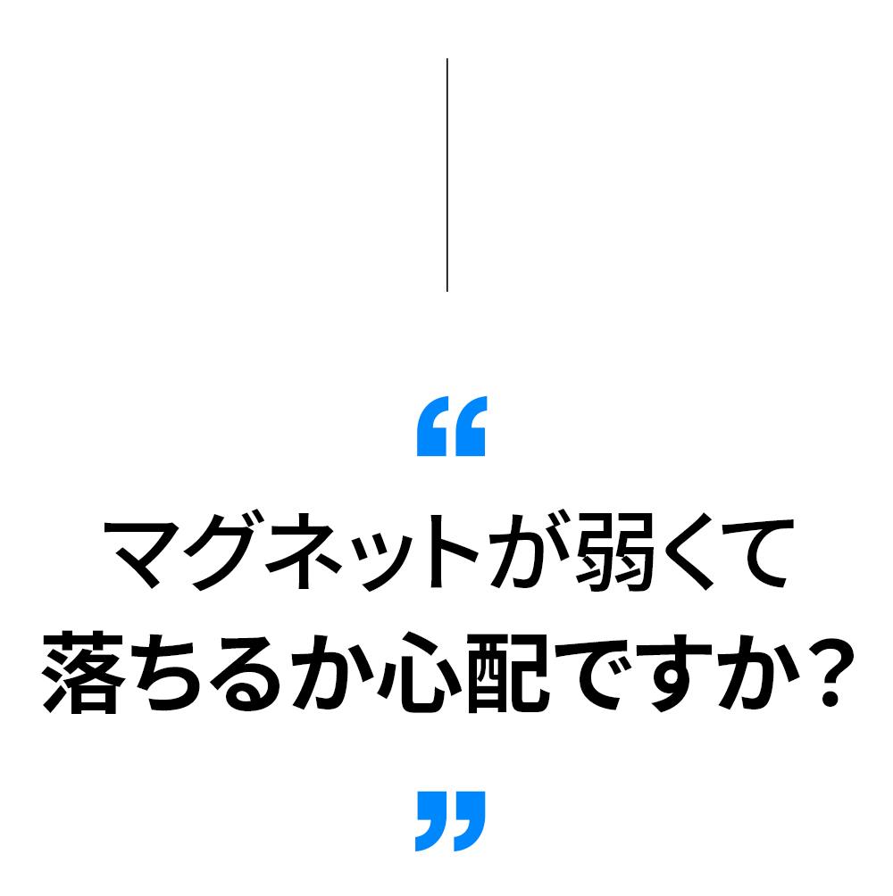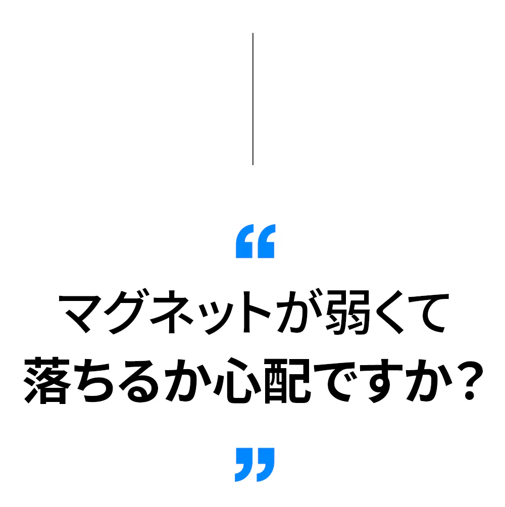 強く揺らしても落ちないほど強力なマグネットを内臓しているので、スマホをくっつけて動画を見てるときにスマホの重さで落ちたり、タッチする衝撃で落ちたりしません。