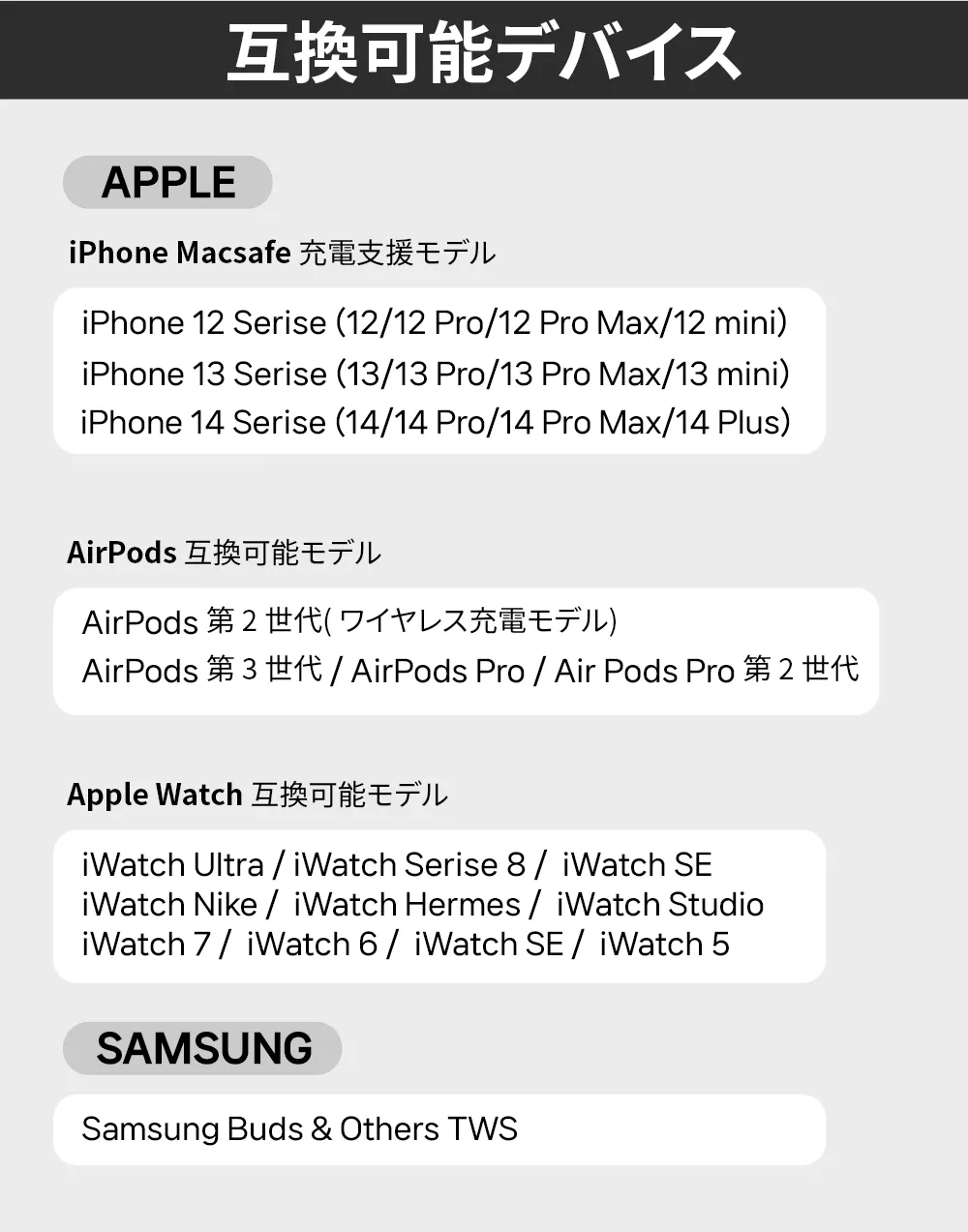 ※Magsafeがないワイヤレス充電対応のスマホの場合、別途のMagsafe充電ケースやマグネットリングなどを付けて使用できます。