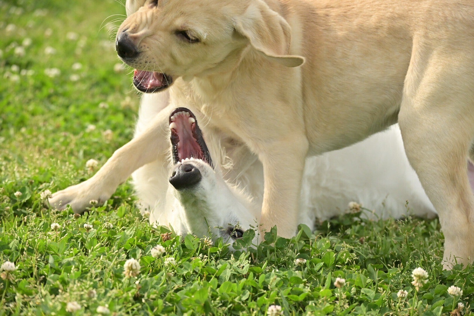 大きいわんちゃんが体の小さいわんちゃんを追いかけて、首根っこを噛む風景を想像してみてください。。それは 間違いなく「狩り」ですよね。 確実に危険なシチュエーションです。
