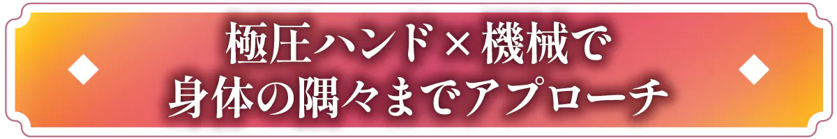 当店では、人気のハンド施術に加え、相乗効果でより短時間で身体の奥深くまでアプローチができるような機械を導入しています。