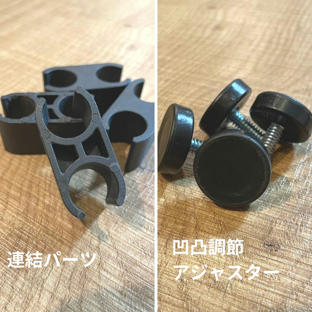 右 高低差調節アジャスター 設置場所を選ばず対応できます。調節は回転させるだけの簡単設計