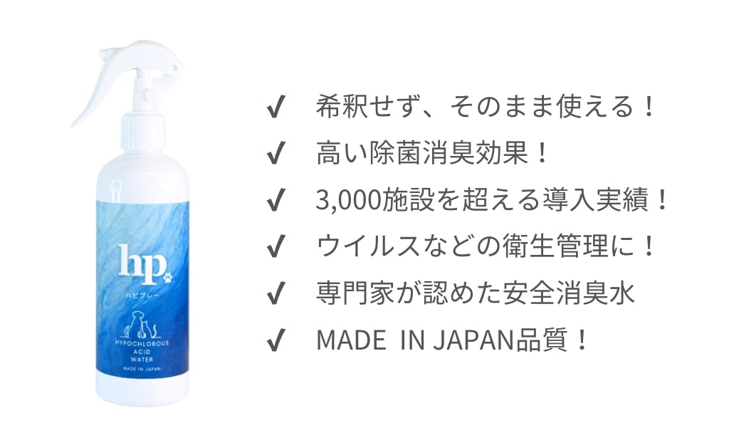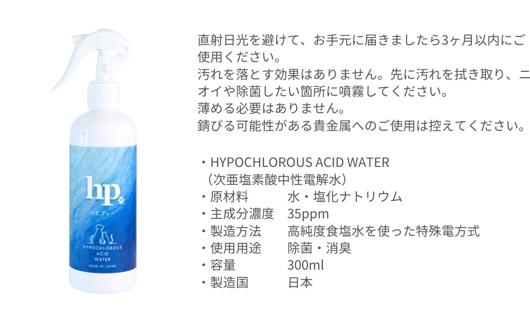 ・HYPOCHLOROUS ACID WATER 除菌消臭スプレー「ハピプレー」