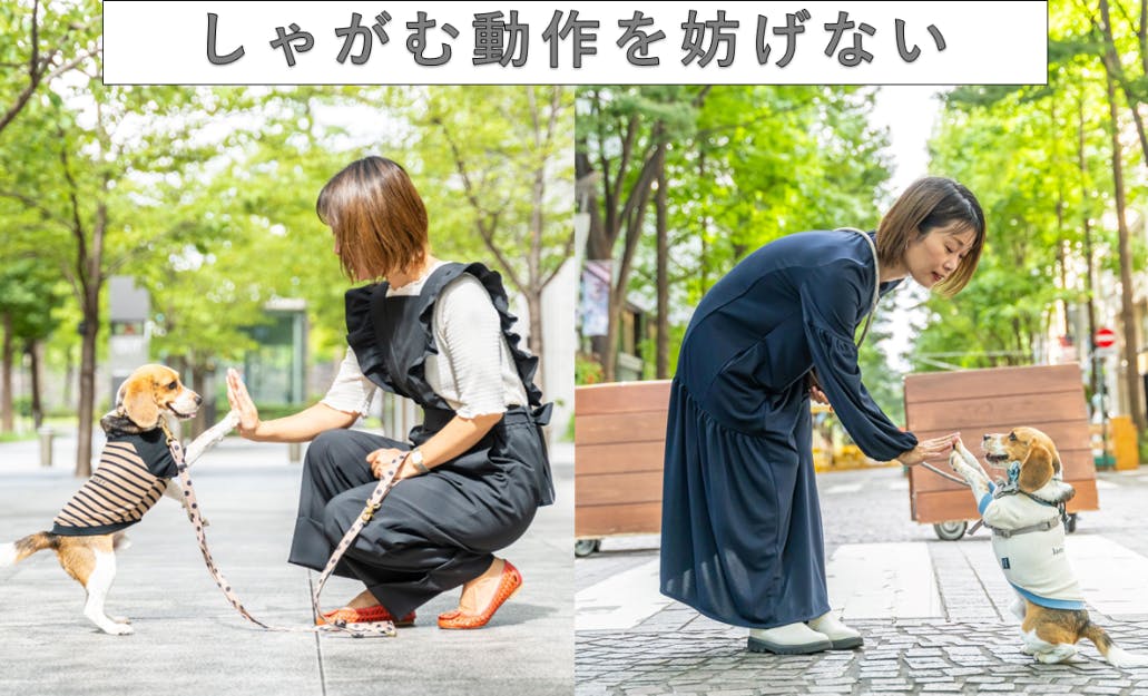 ペットと散歩をしているとよくあるのが「しゃがむ」時や「屈んだ時」。