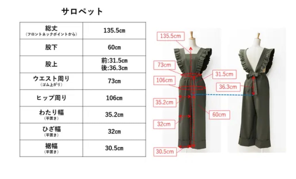 ・ワンピース しゃがんだ時を考慮してサロペットに比べると短めに。