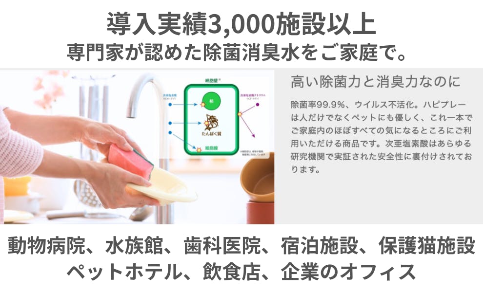 動物病院の専門家が使う除菌消臭水をご家庭に。