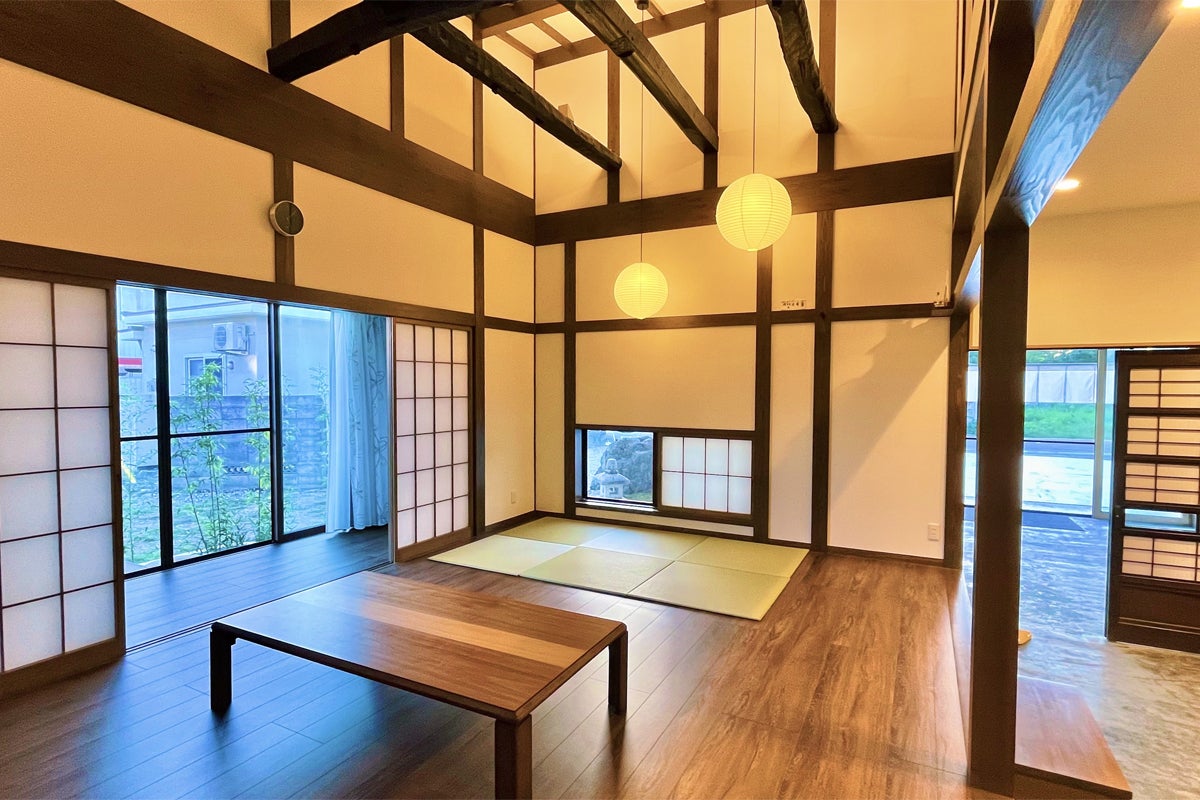 宿泊のほか、レンタルスペースやチャレンジショップとしてもご利用頂ける新築の施設です。リビングは古民家風で和モダンな空間を演出し、宿泊スペースは4名様用の和室と2名様用の洋室がございます。もちろんお風呂を完備し、バーベキューを楽しめる裏庭もあります。