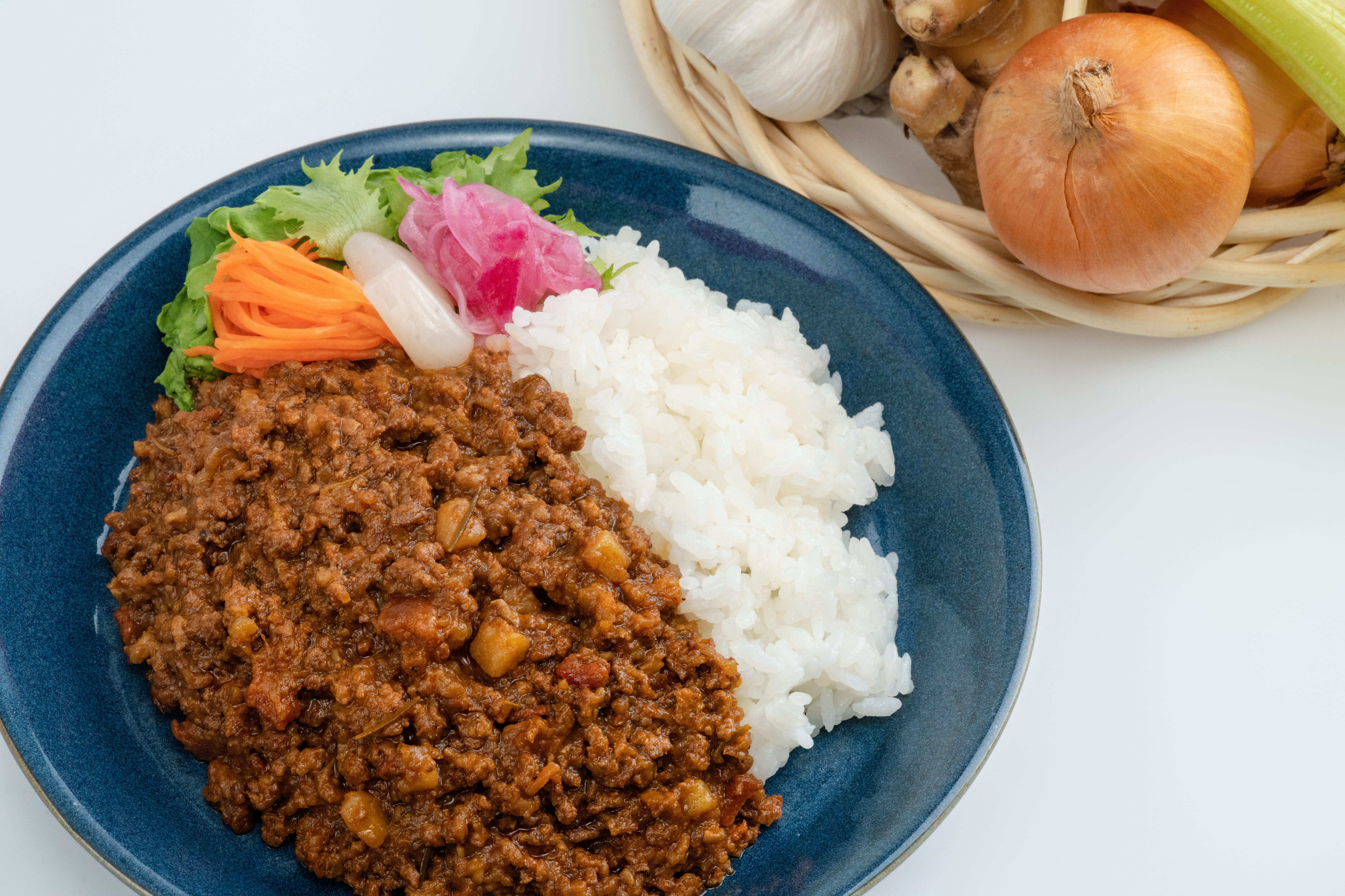 そのタイミングで末松シェフから「固さを敢えて活かし、旨味をより引き出せるようひき肉にしてみてはどうか?」という提案をもらい、私たちのプロジェクトは大きく前進しました。私たちの思い、アイデア、検討を続けた軌跡を末松シェフに託し、試作してもらったカレーは、親鶏のスープと歯応え、野菜の旨味が絶妙に調和した「これまでに感じたことのない新感覚のカレー」となりました。ターメリックを敢えて使っていないことで、スープ本来の味わいをまっすぐに感じられるイタリアンテイストのキーマカレーが誕生しました。