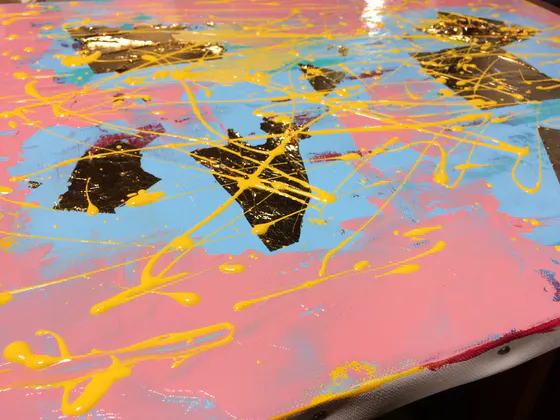 今描いてるキャンバス作品は明日スタジオでMV撮影に使われる作品です。